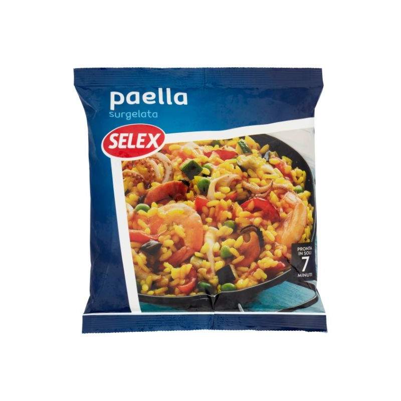 Consigli di preparazione Fare scaldare 2 cucchiai d'olio extra vergine d'oliva in una padella antiaderente, versare il contenuto della busta ancora surgelato e cuocere a fuoco medio-alto per 6/7 minuti, mescolando di tanto in tanto. Prima di togliere dal fuoco verificare che la paella abbia raggiunto il grado di cottura desiderato.